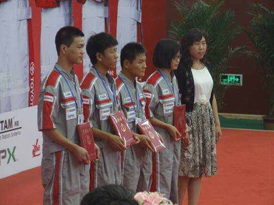 龍神培訓(xùn)參賽選手青島市城陽(yáng)區(qū)職業(yè)中等專業(yè)學(xué)校:王錚(左一)、張藝(左二)各獲得噴漆組一等獎(jiǎng),廣西理工學(xué)校:鐘英源(右一)獲得噴漆組二等獎(jiǎng),祝賀他們!