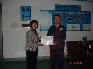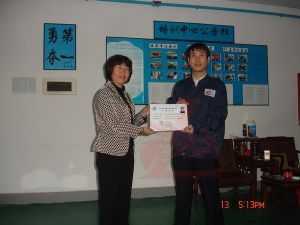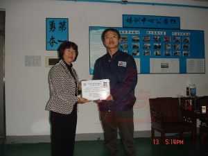 龍神彭小浣經理為老師頒發(fā)汽車鈑金與噴漆修復技術合格證書