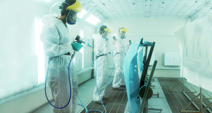 (5)噴涂面漆。將調(diào)好的面漆加入噴槍罐中,調(diào)整噴槍的氣壓、出漆量以及噴幅后,開始均勻地噴涂在鈑金件上。不同的面漆在噴涂時的工序也有所不同。