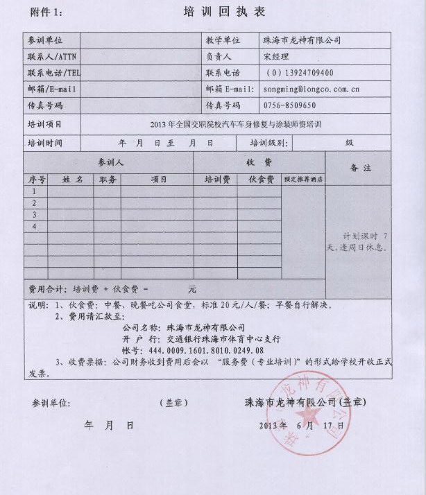 2、報(bào)名回執(zhí)表需在培訓(xùn)開(kāi)始前5日,回傳至我司。