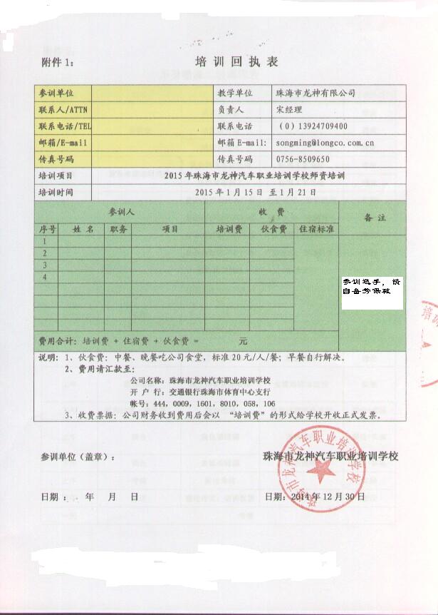 2、報(bào)名回執(zhí)表需在培訓(xùn)開(kāi)始前5日,回傳至我司。