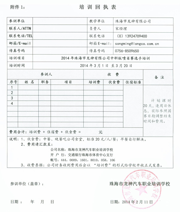 為了響應(yīng)國(guó)家“企業(yè)應(yīng)該積極融入和參與職業(yè)教育事業(yè)”的號(hào)召,讓部分參賽條件和設(shè)施不足的學(xué)校也能參加技能大賽,促進(jìn)全國(guó)中職技能大賽在全國(guó)的快速和均衡地發(fā)展,珠海市龍神有限公司憑借自身20多年的汽車鈑噴行業(yè)經(jīng)驗(yàn)和設(shè)備技術(shù)優(yōu)勢(shì),定于201431日至320在珠海舉辦為期20天的汽車車身修復(fù)與涂裝技能大賽選手培訓(xùn),具體方案如下: