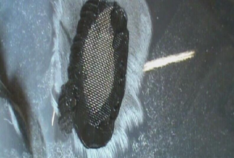 步驟5:用剪刀壓住無(wú)銹加固網(wǎng),然后用專用烙鐵從加固網(wǎng)的邊緣開(kāi)始進(jìn)行熔植,如圖1-5所示。