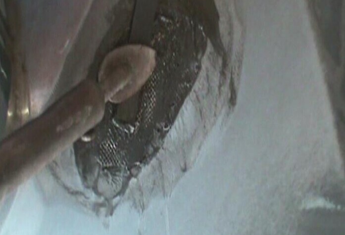 步驟7:對(duì)熔植的無(wú)銹加固網(wǎng)周?chē)M(jìn)行簡(jiǎn)單的打磨,以增強(qiáng)其表面的附著力,便于后續(xù)進(jìn)行玻纖膠條覆蓋的操作,如圖1-7所示。