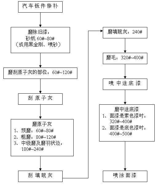 汽車修補(bǔ)干磨程序及砂紙的選擇 備注: 1、除舊漆時(shí)采用黑金剛配除漆除銹機(jī)能夠快速地除去平面、狹縫及凹凸不平表面的舊漆與銹漬;采用噴砂槍噴砂還可以很快地去除某些孔隙、縫隙或手都很難伸進(jìn)去的部位的舊漆與銹斑; 2、在磨填眼灰、中途底漆和尤其有邊角位、弧度位的表面時(shí)配打磨緩沖墊(置于圓盤砂紙和托盤之間)能夠使打磨作業(yè)更加順暢,并能獲得規(guī)則的表面質(zhì)量。 2007-08-25 12432