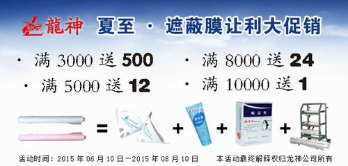 夏季讓利大回饋,遮避膜優(yōu)惠大促銷 2015-06-05 30306 買滿3000元,贈(zèng)送紙漏斗500個(gè); 買滿5000元,贈(zèng)送除漆洗手膏1箱; 買滿8000元,贈(zèng)送標(biāo)準(zhǔn)抹塵布1箱/24盒; 買滿10000元,贈(zèng)送小切紙架1臺(tái) 。