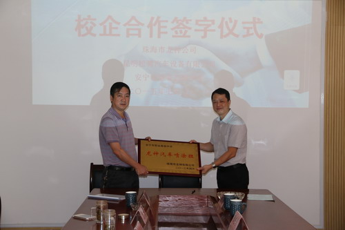 2015年7月31日,珠海市龍神有限公司、云南昆明松騁汽車(chē)設(shè)備有限公司及安寧市職業(yè)高級(jí)中學(xué)各方代表,在安寧市高級(jí)職業(yè)中學(xué)就“Longco-ABP”校企合作項(xiàng)目舉行簽約儀式。